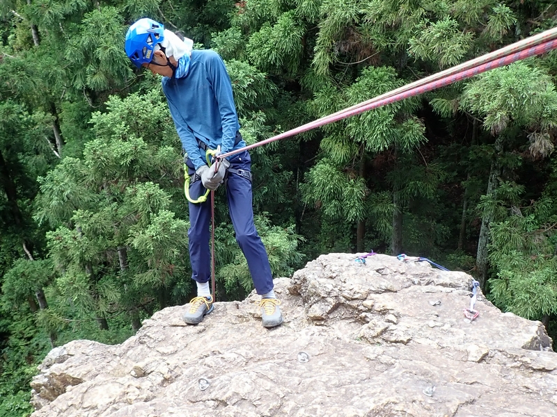 ビレイの特訓を受けたマヒトさん、懸垂下降も良くなりました