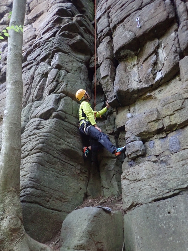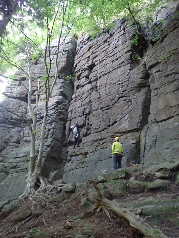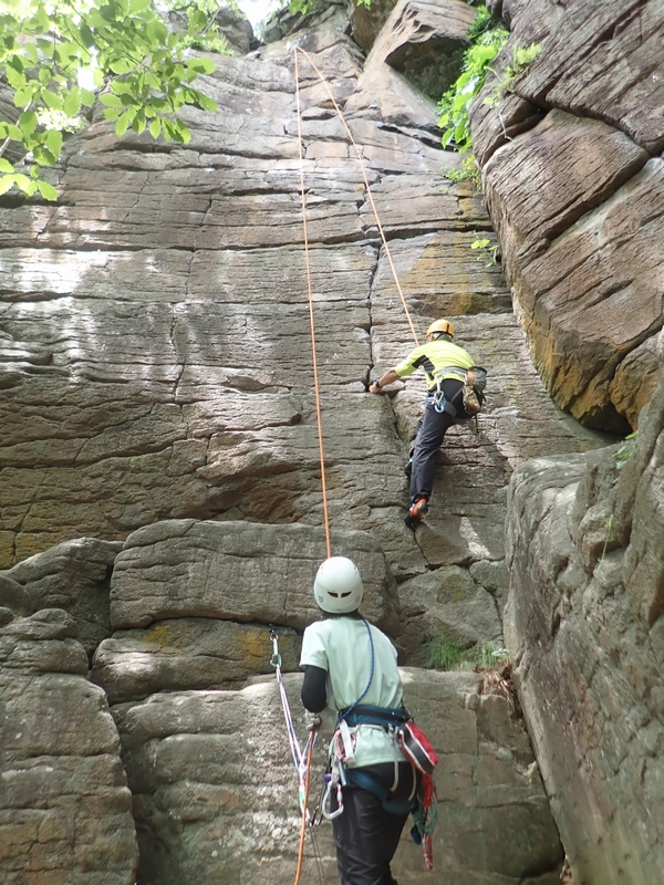 続いて一本杉エリアの「ドリームランド 5.10a」と「ハブアナイスデイ 5.10b」でトップロープ。