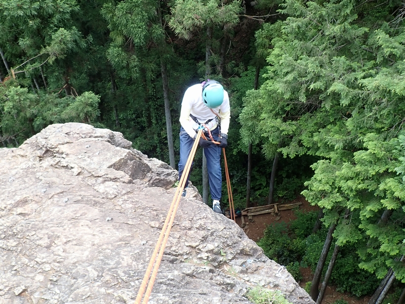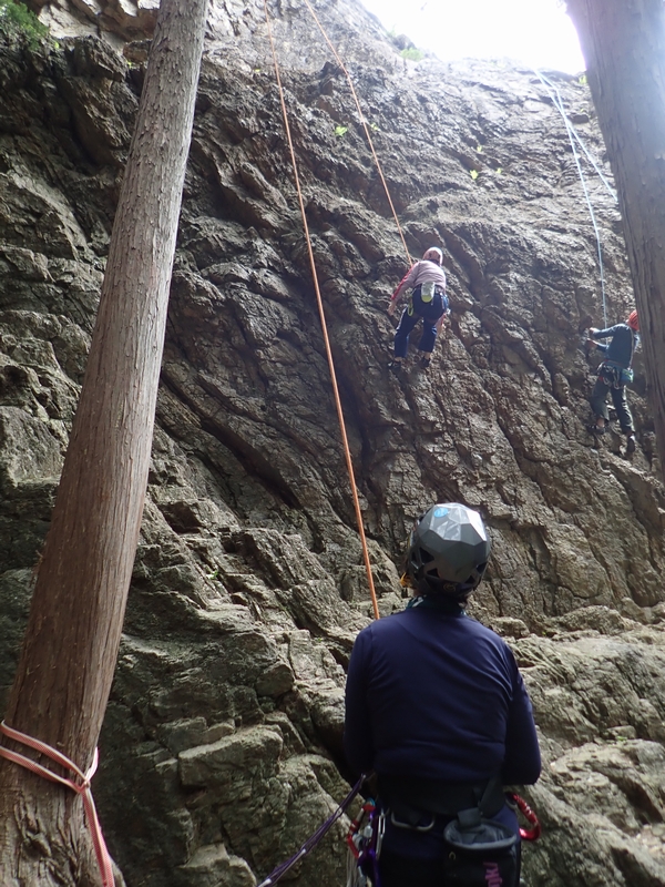 懸垂下降の練習。