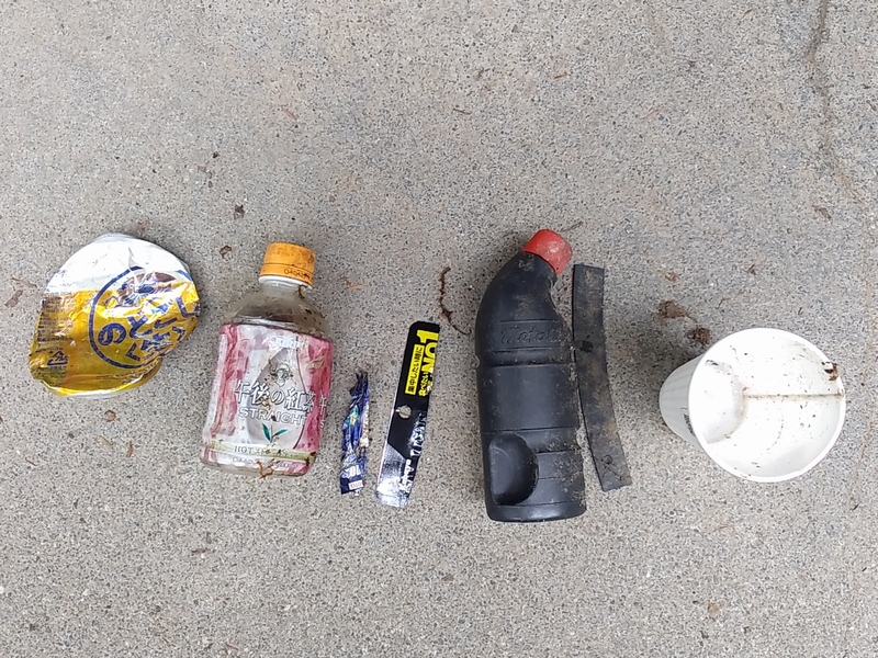下山時に登山道の脇でゴミ拾い。駐車場近くはもっと散らかっているのですが、持ち帰れないので、このくらいにしておきます。