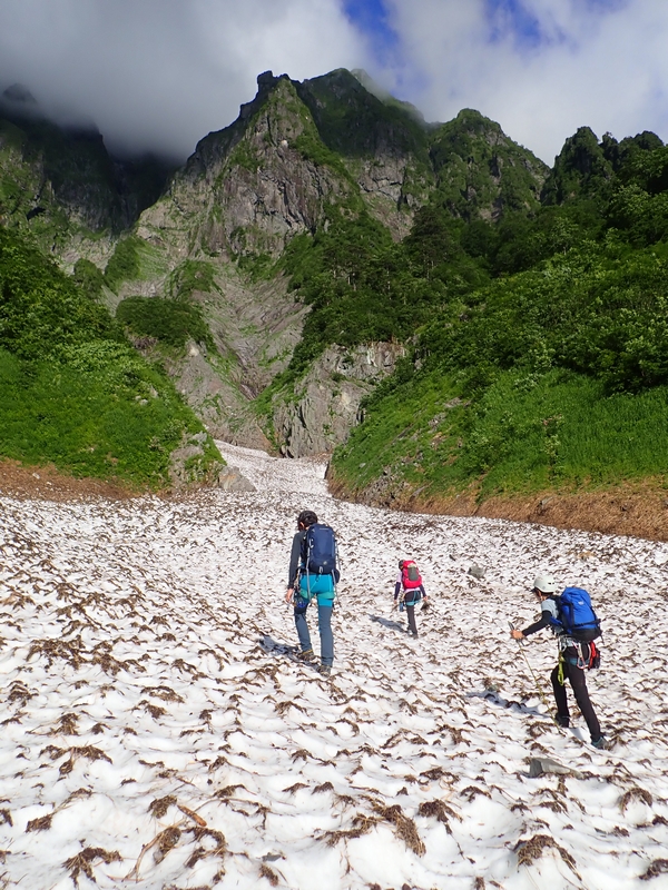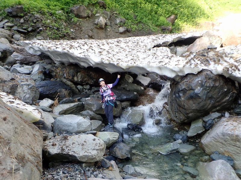 一の沢出合まで雪渓が後退していた。