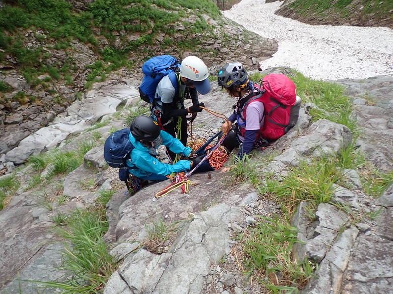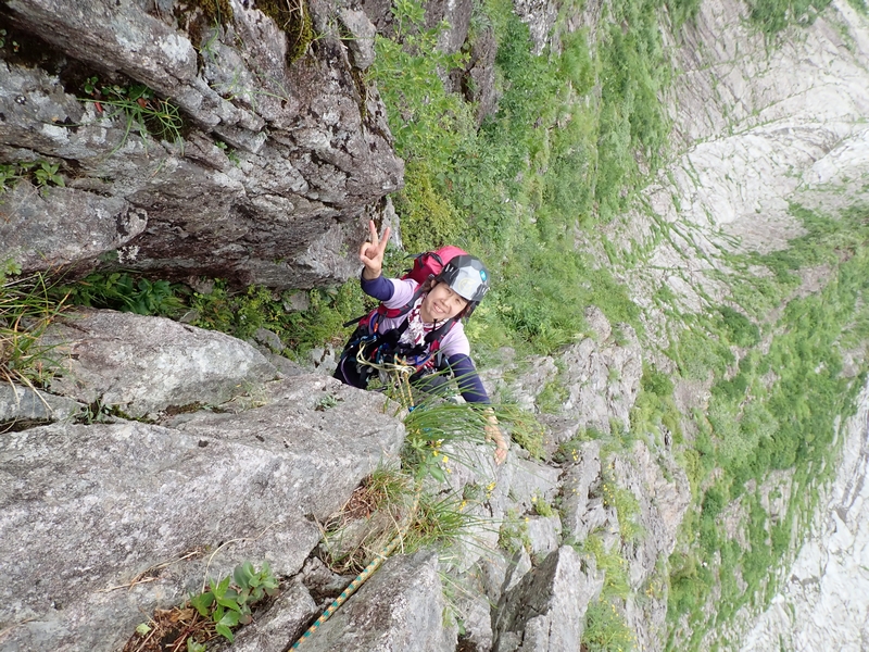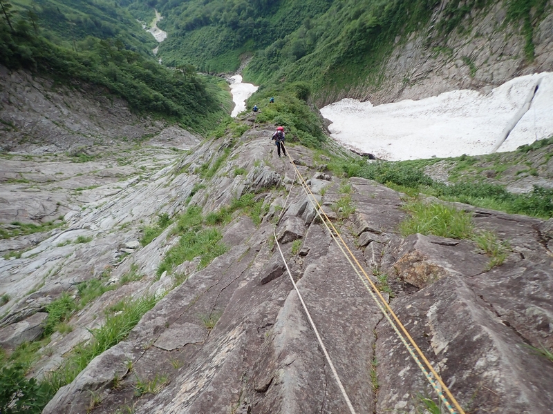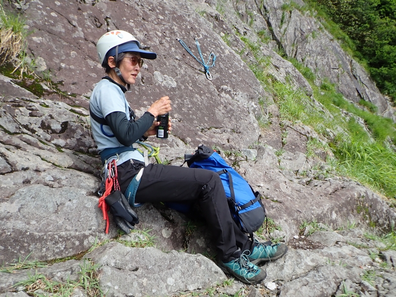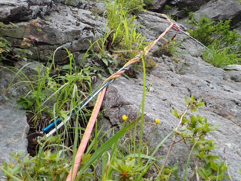 ルート図上の4ピッチ目(もう少し細かく切っている)を越えたところで12時を少しオーバー。13時に衝立の頭という予定だったので、ここで諦めて下降開始。