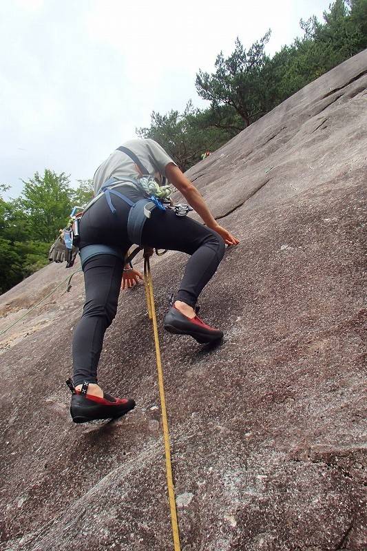 「足慣らし」と銘打っておきながら初めの一歩がなかなか出ないのは恥ずかしいが、出ないものは仕方がない。5日前に登ったルートなのに、本当にこの足が滑らないのか信じることができなくて。大師匠は「え〜、何してるの」なんて仰るが、私にとってはそんなに簡単ではないのだ。