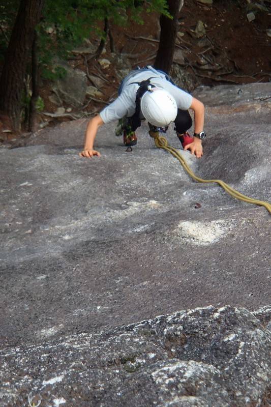 梅雨が明け、夏山シーズンがやってきた。仲間達は沢や高山へ。大師匠と私は、再びマンツーマンでちょっぴり地味なスラブ修行をしに小川山へ。天気が良く、先週ガラガラだった駐車場は満杯。ガマスラブも既に何組ものクライマー達で賑わっていた。