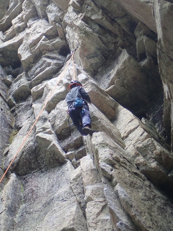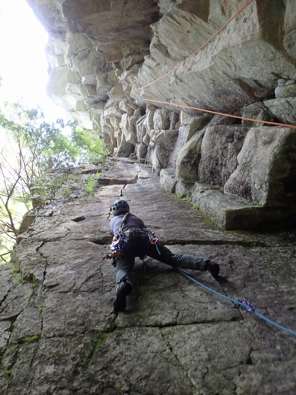 「海賊の娘 5.10b」トップロープ。