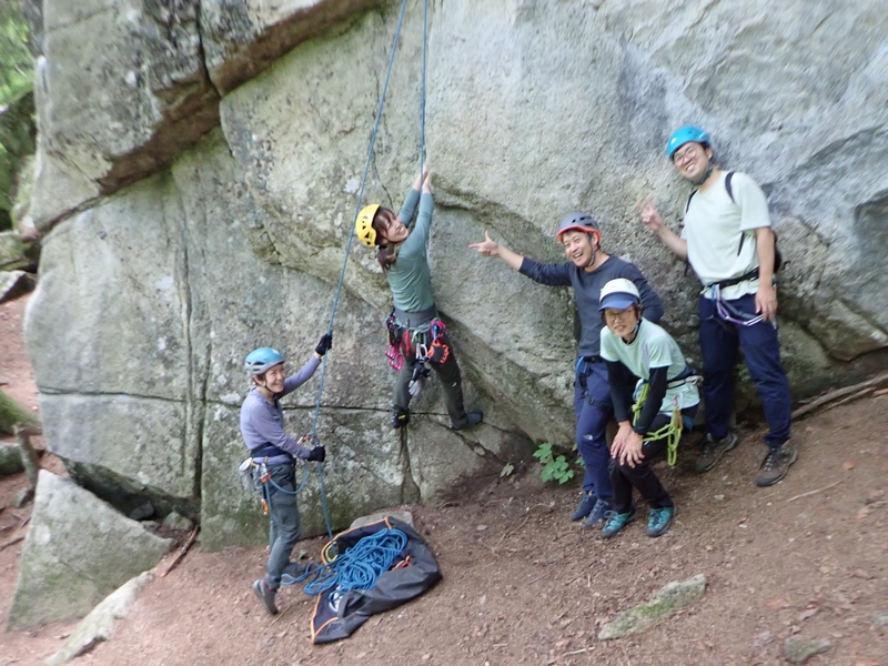 「たぬき 5.10a」ベス、タケちゃん、スミコさんリード。他はトップロープ。