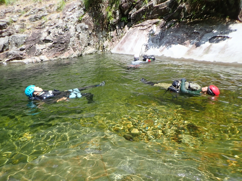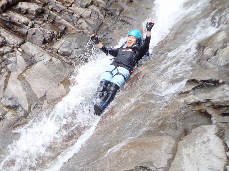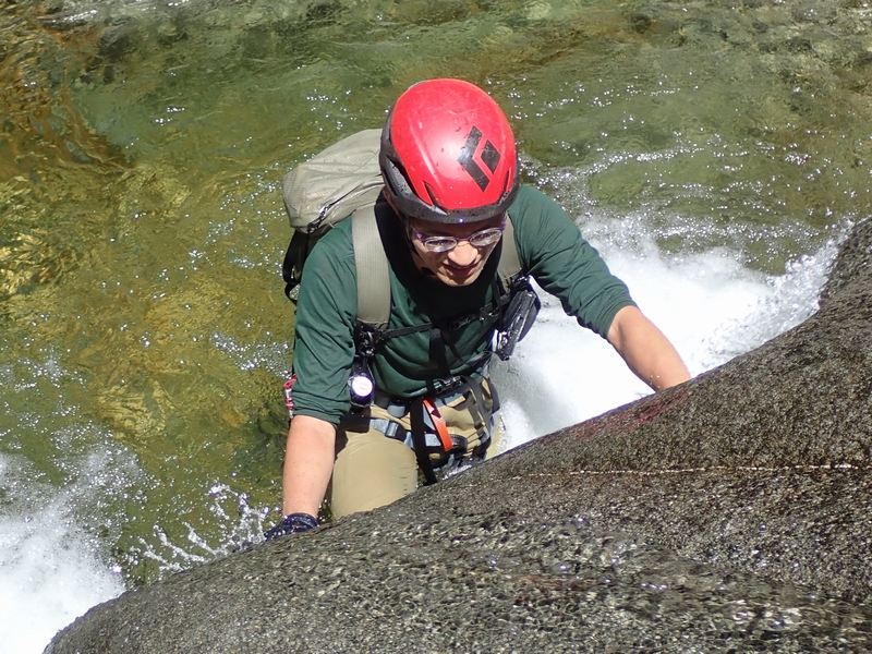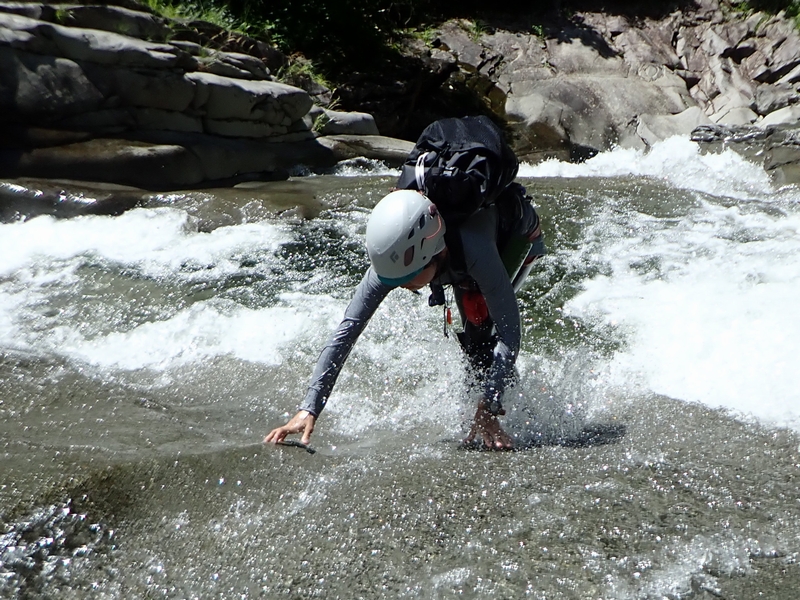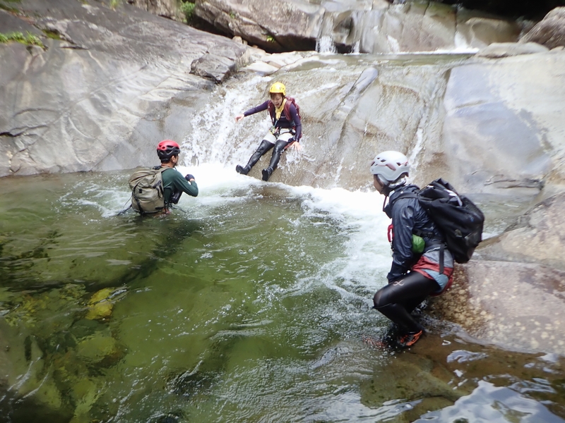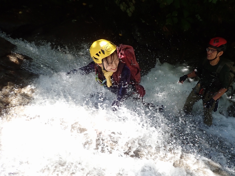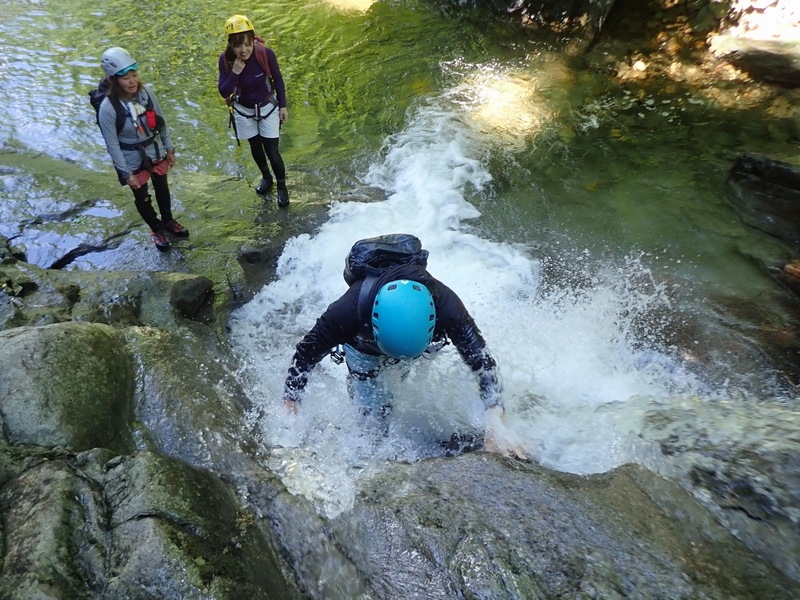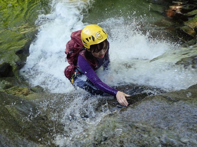 最初はボルダリング感覚で小滝を越えていきます(ここで時間をかけすぎて、予定の白毛門沢出合まで行けなかった)。
