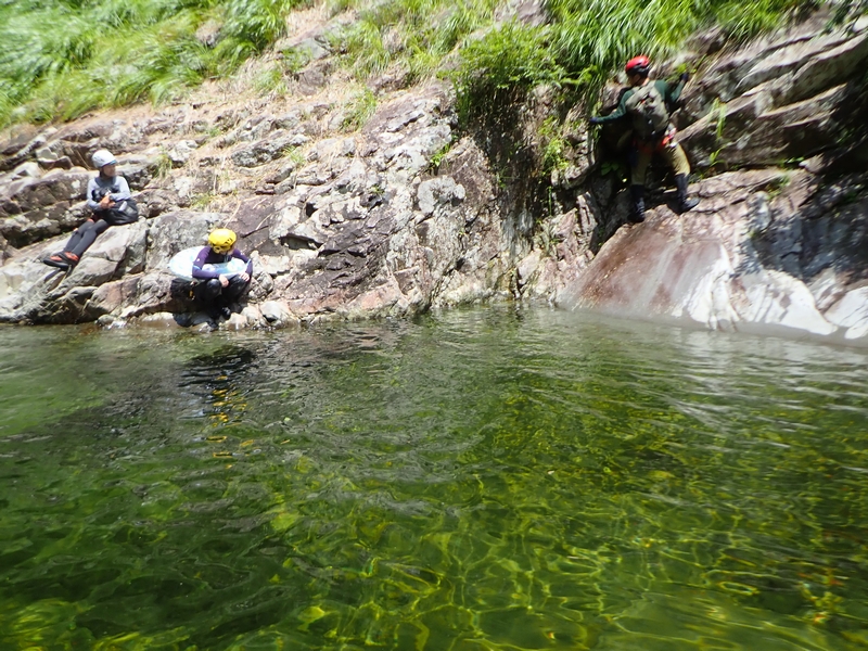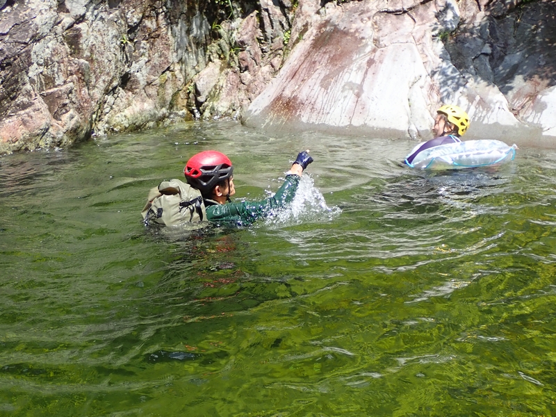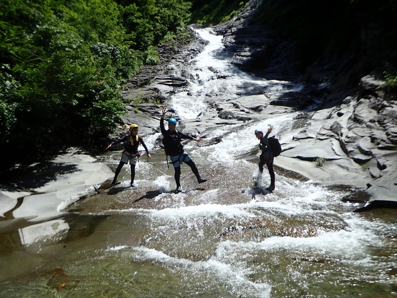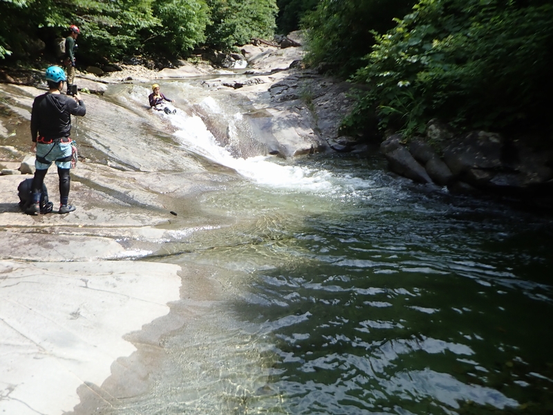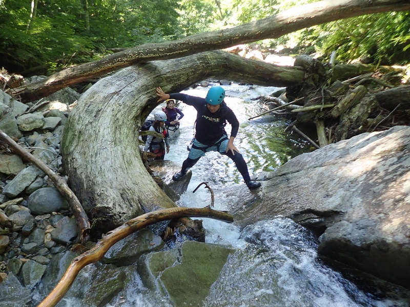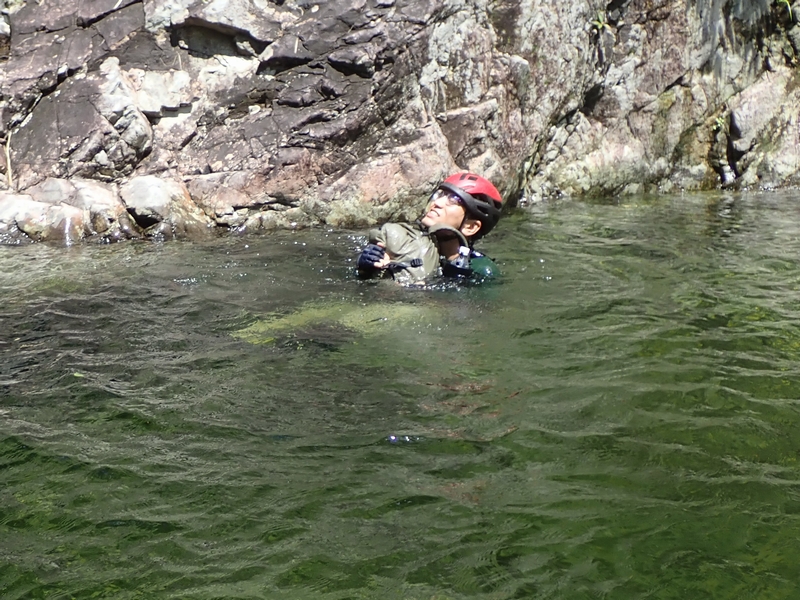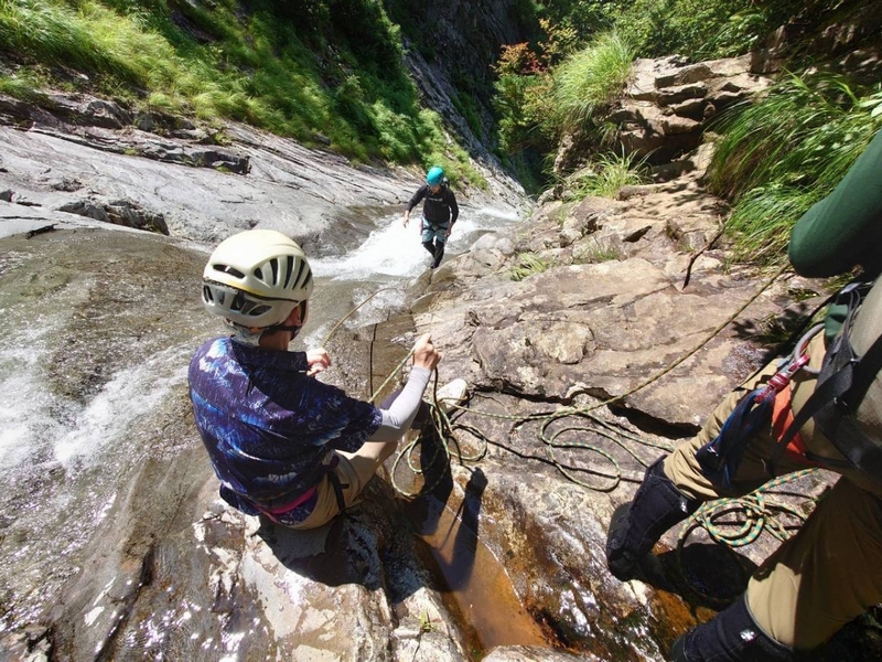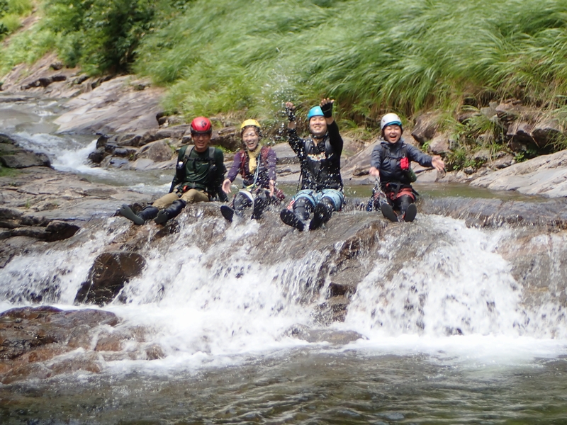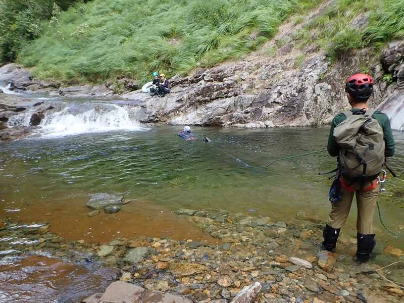 2024年8月4日(日) 今年も谷川の東黒沢で沢登り入門(指導方法の研究)を行いました。メンバーはタケゾー、サカナくん、リエズ、ショウくん。