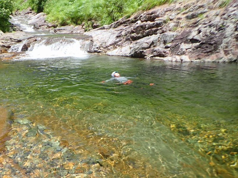 ヘツリを失敗したとき、ザックのショルダーから肩を抜いてラッコ泳ぎ。