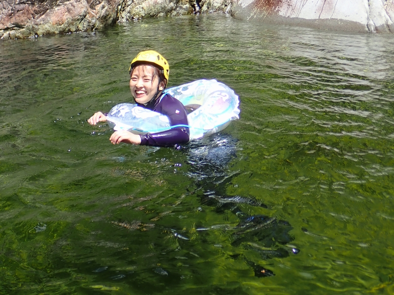 浮き輪を着けたままのトラバースは足元が見えないだけでなく危険(上下さかさまに浮くと、起き上がるのは困難)。