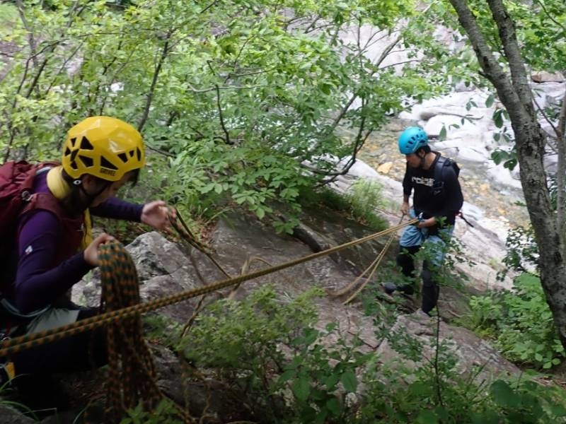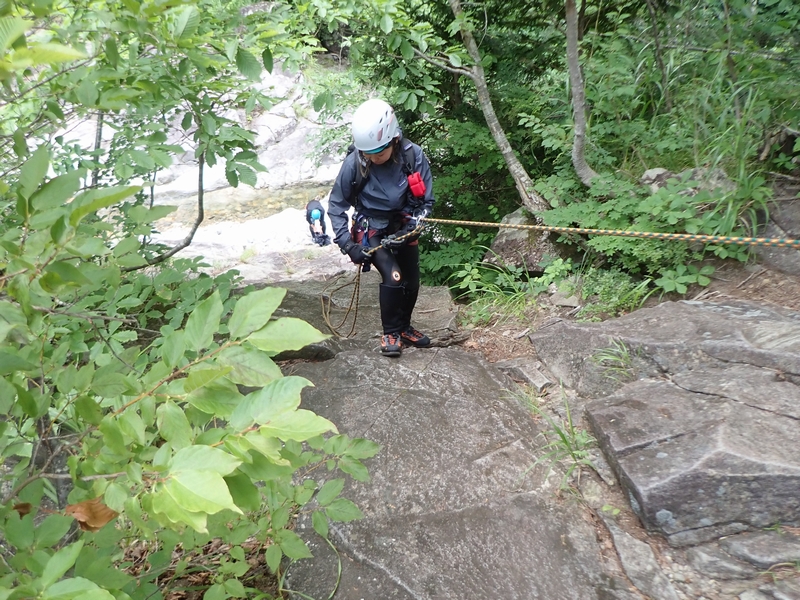 ハナゲノ滝はロープを固定してアッセンダーで…という計画だったのに、だれも使わない(素手でつかんではダメ)。