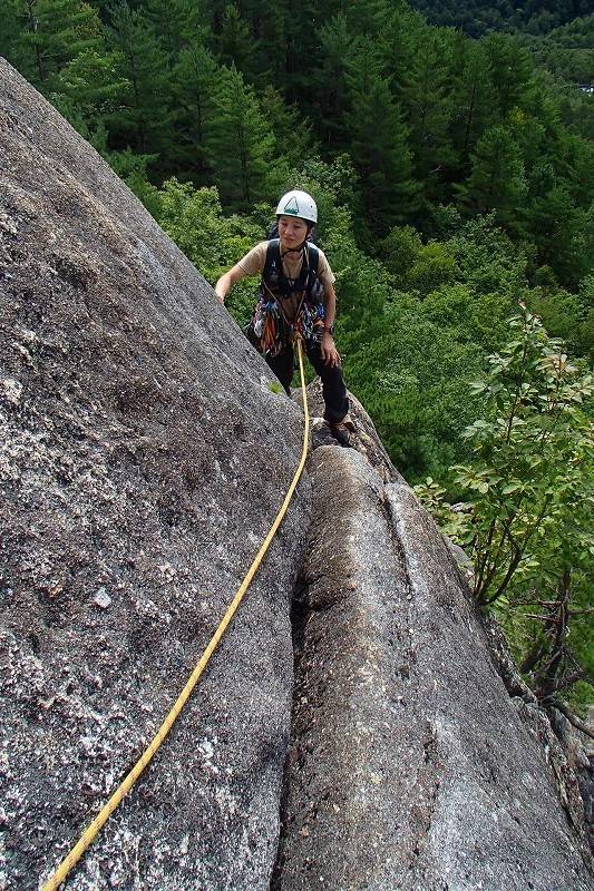 3ピッチ目は前回、私が2ピッチ目から無理矢理継続した上に、残置ハーケンに迷わされて変なルート取りで登ったところ。今回の下の写真が正しいルート。どちらにせよ簡単だがこっちのほうが楽しい。