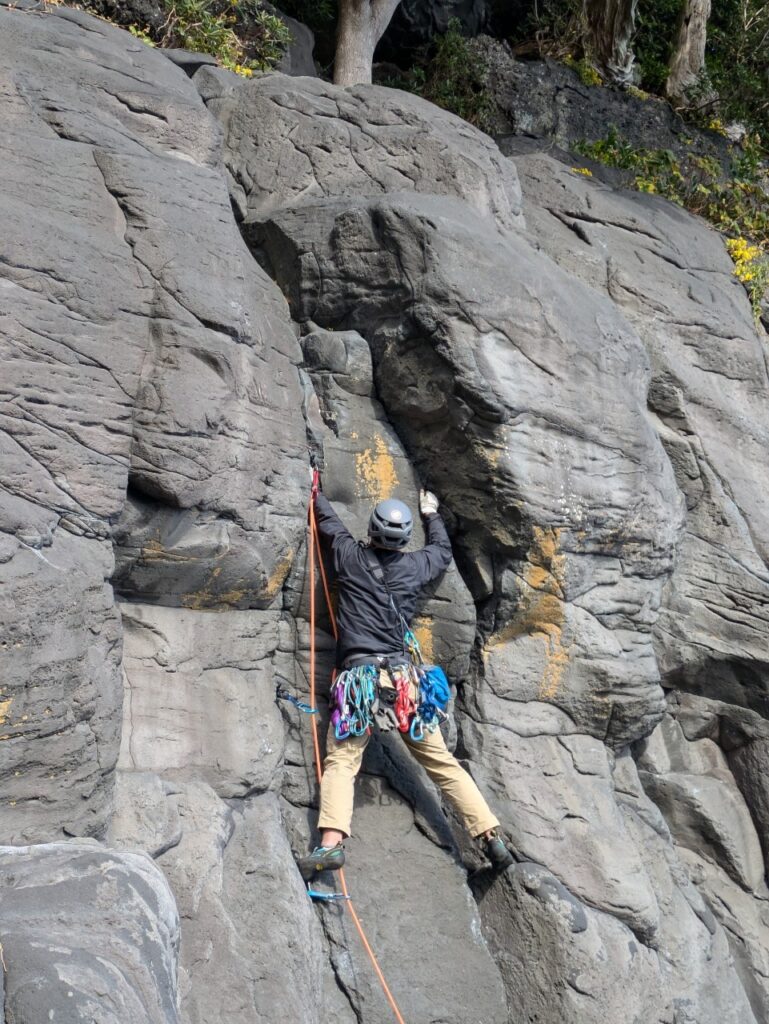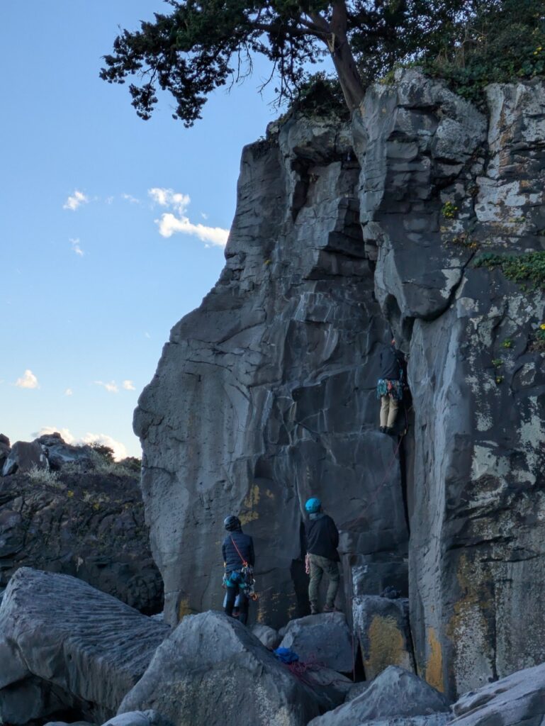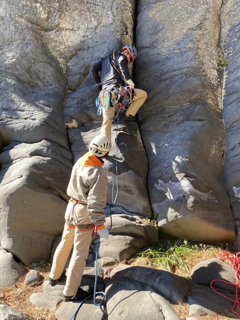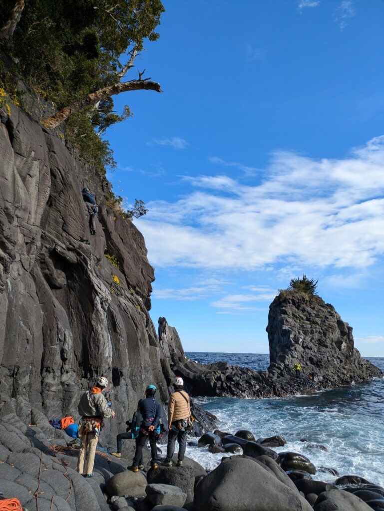 14日の朝富戸駅に集合、フナムシロックへ。すでに取付いているグループもあったが、まずまず空いている。今日は泊まりなので、時間的に余裕がある。城ケ崎初めて、のメンバーもいて波がドーンと打ち寄せる中のクライミングに新鮮さを感じる。気が付くとアップが終わって皆さん難しいエリアに移動したのか、途中から貸切状態になった。