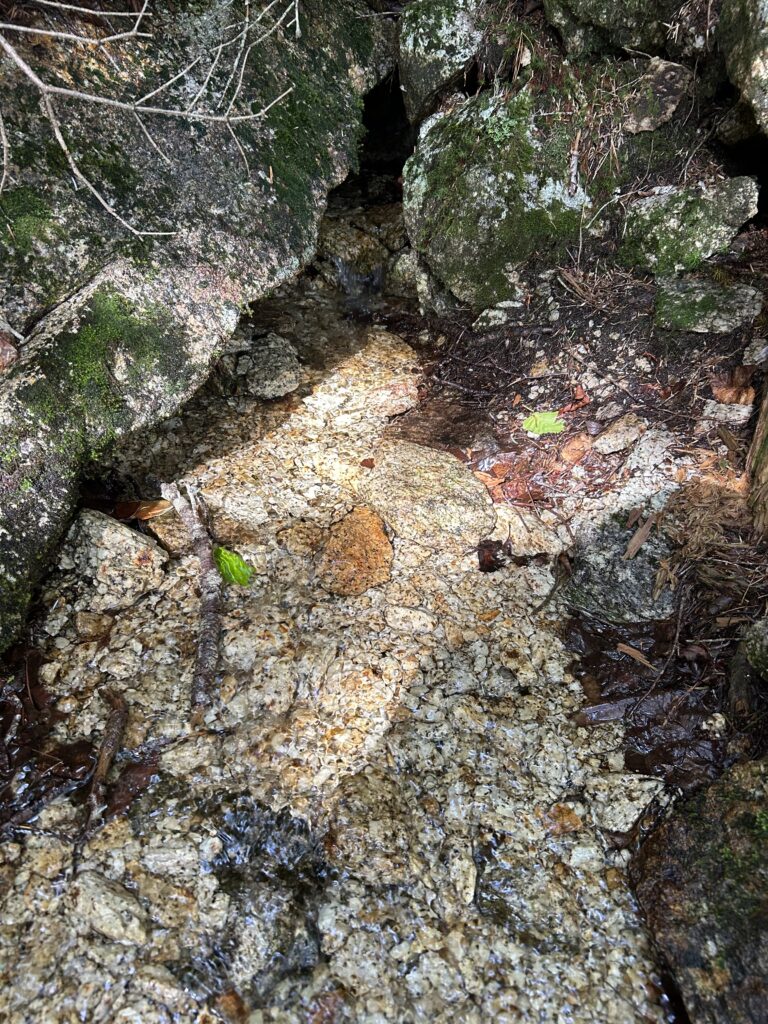 石室に着いてすぐに水汲みへ。白いポールから100mほど下る。