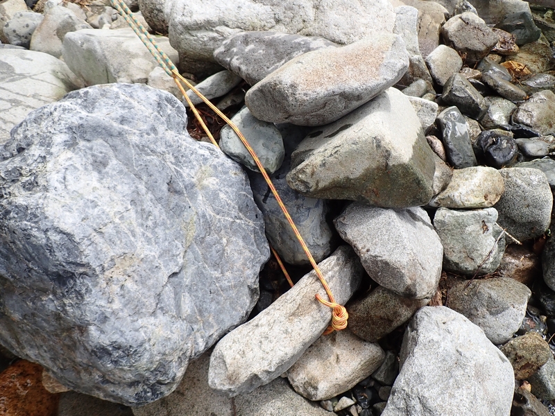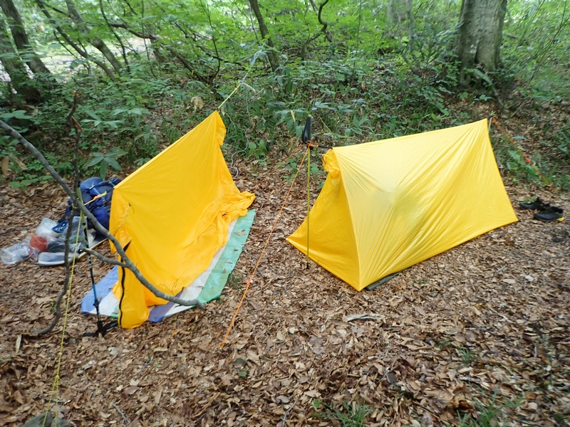 2025年8月16日(土)から17日(日)、8月入会のM上イさんと渡渉練習&ビバーク体験。お付き合いはベス。先ずはツェルトを張ってもらいます。