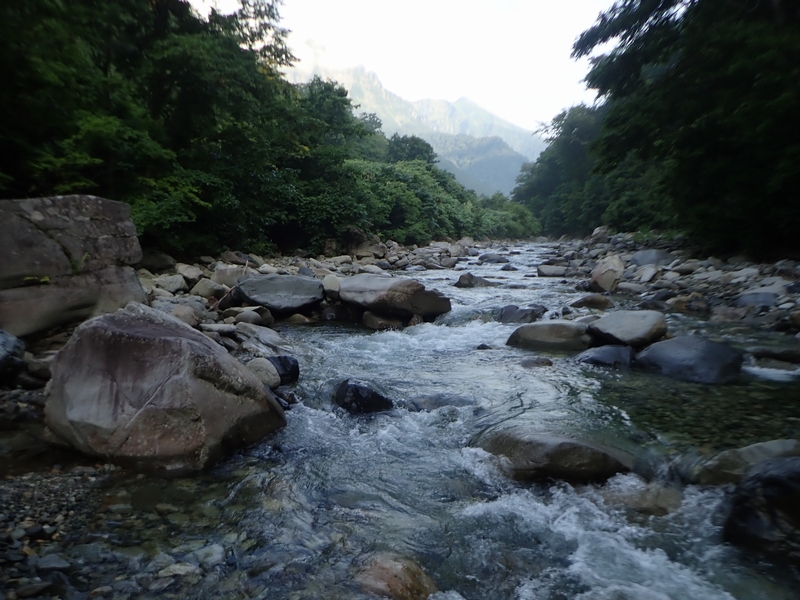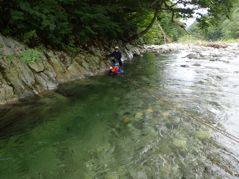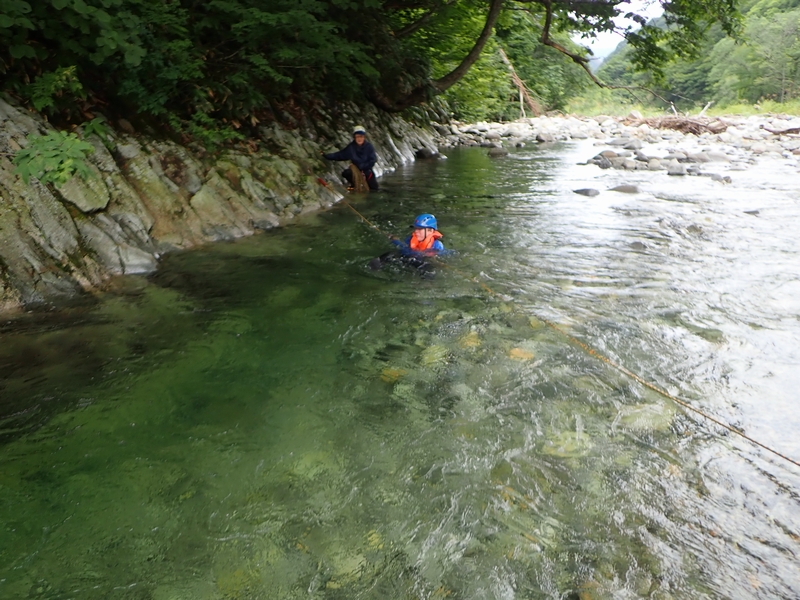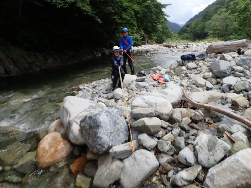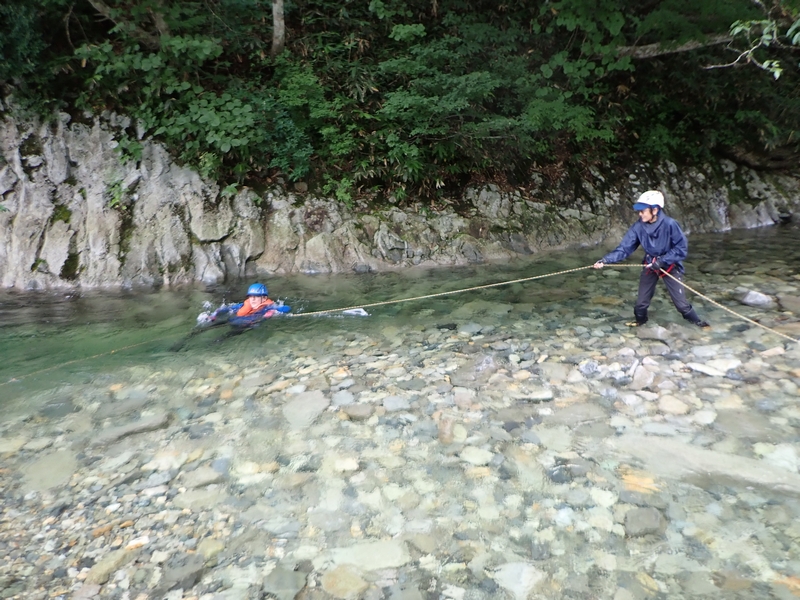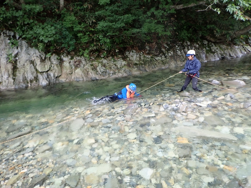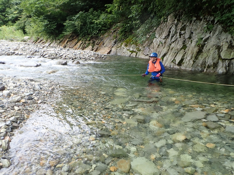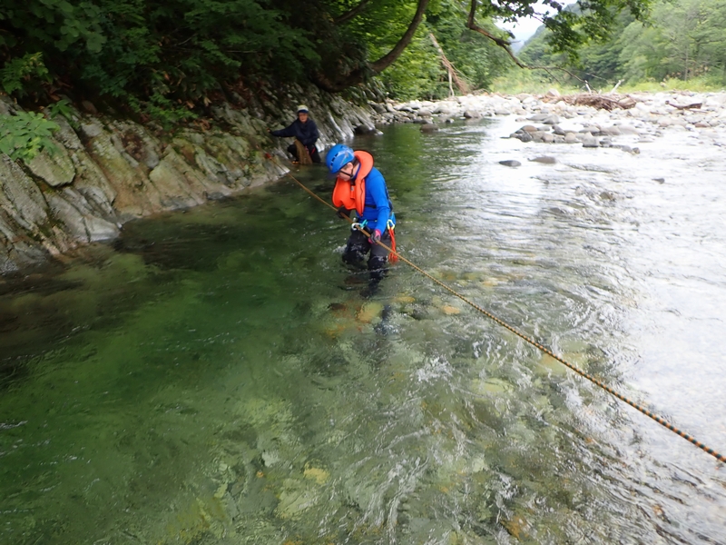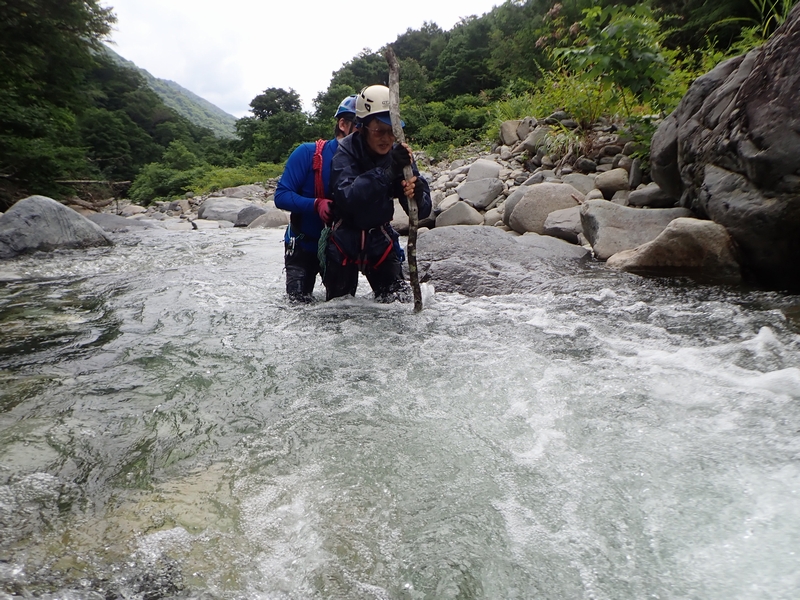 湯檜曽川で渡渉練習。