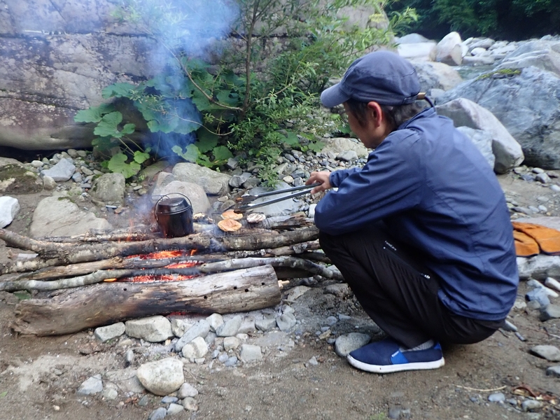 幕営地に戻って、ビバーク体験。