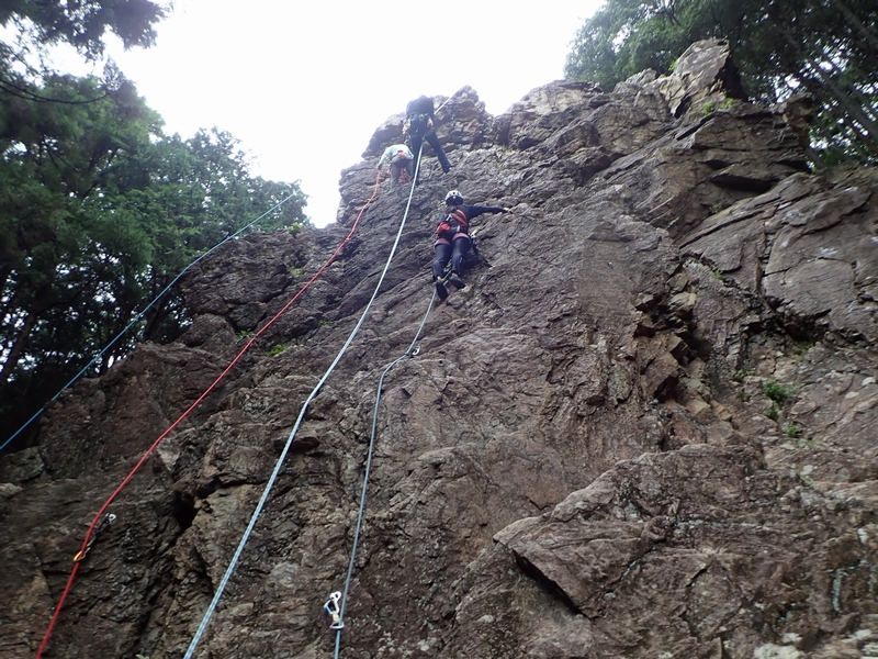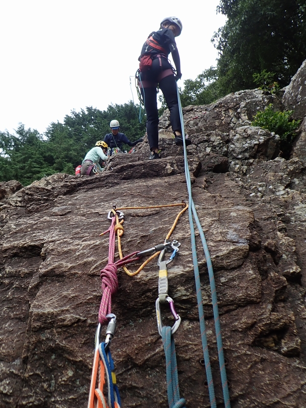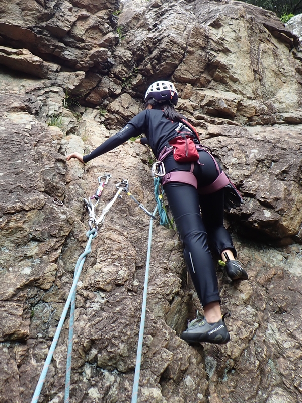 2025年10月3日(金) 玉川上水さんのお誘いで、マルチピッチの流れを確認。メンバーは玉川上水・イッコウさん、女王ベス・ヒロミさん、ブルマ・ユリナちゃん。まずはA山ロックで終了点での作業を確認。