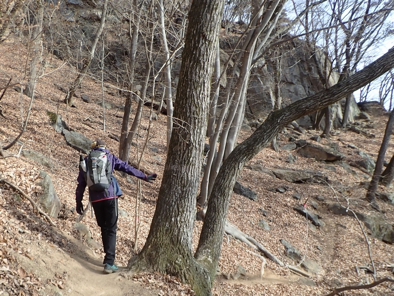登りは岩場に近い「岩場コース」。下りは小さく周回する「山腹コース」。
