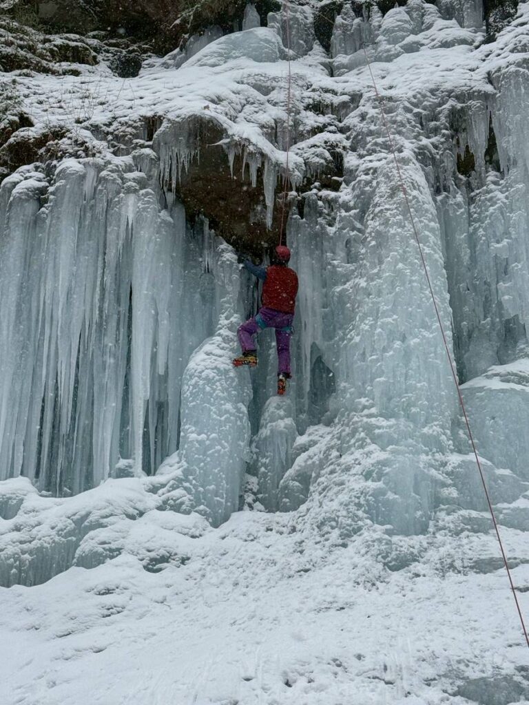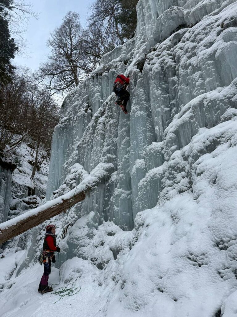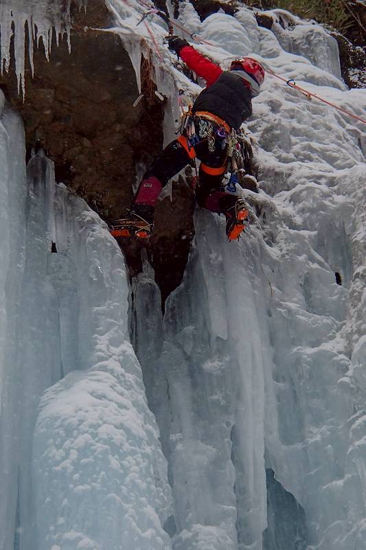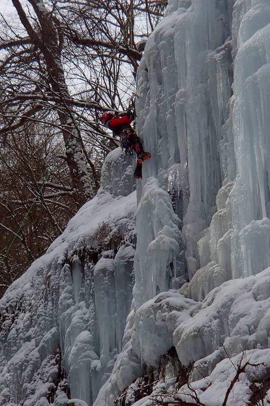 垂直の部分が多いので迷ったら腕力が尽きる。必要に迫られ直ぐアックスを打つことになるので、今日の自分の課題にピッタリのルートだ。青木先生、ありがとうございます。