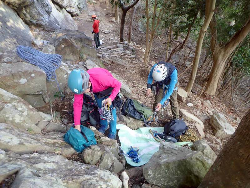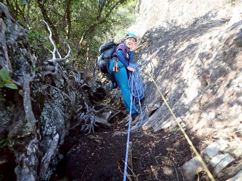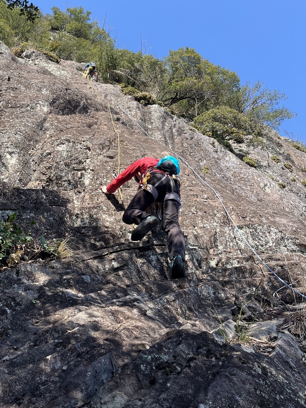 9時50分ころ登攀開始。スミコさんが奇数ピッチで、リオさんが偶数ピッチ。ブルマはオールフォロー。