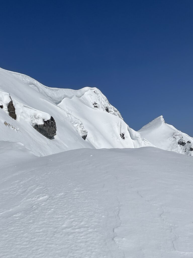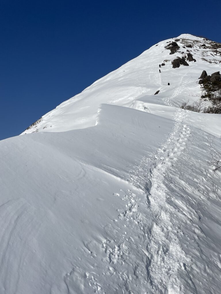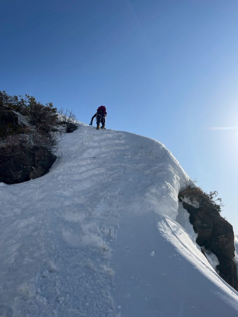 稜線の雪庇に注意