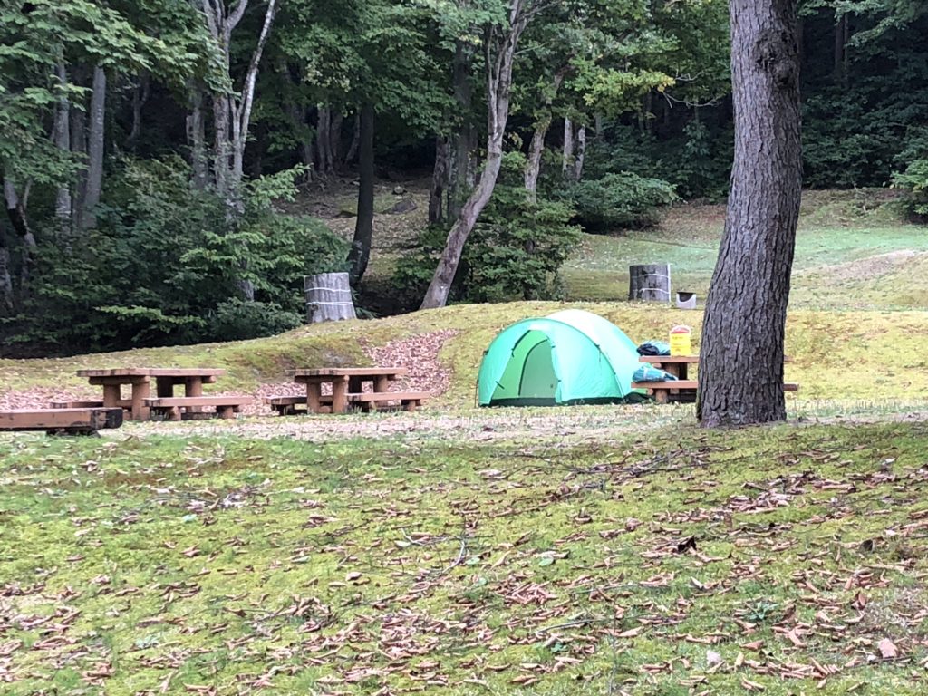 さて、早く下山してしまったため今夜のテント設営予定地のネズモチ平駐車場にはまだまだ沢山の車が停まっている。早く飲み会をしようと目論むが、人の目があっては、さすがに張れない。結局、お風呂に行って時間を潰してから明日の登山口を偵察に行くことになった。