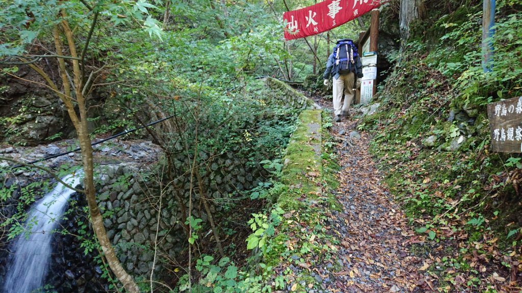 沢を眺めながらしばらく下り、登山口に戻ってきた。看板には埼玉県警察山岳救助隊からのメッセージが貼られていた。ネットの情報をもとに通行禁止のルートに入っての遭難が多発しているとのこと。