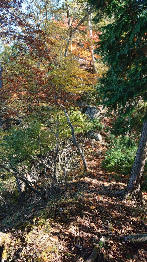 急斜面の登り返しはなかなかしんどい。それにしても道標のピンクテープが多い山だ。道迷い件数が多かったのだろう。支尾根から上は踏み跡が薄く、それほど大人数が入っている印象はない(今日も誰にも会わなかった)のだが。