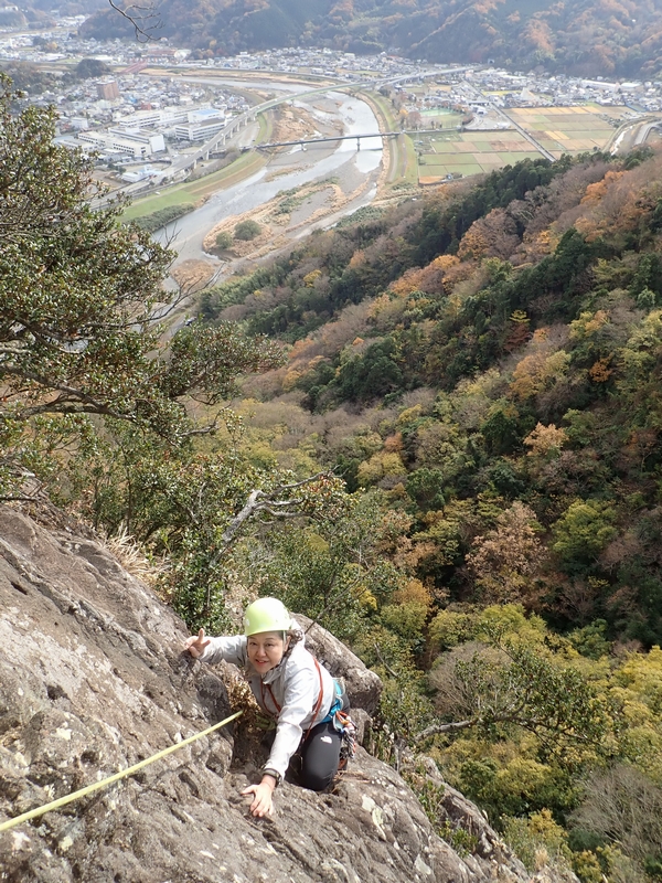 2020年12月13日(日)昨日につづいて、大仁城山。今日の目標は西南カンテルート。K崎ーY田、I葉ーK藤、S根ーT使の3パーティーが南壁の頭を目指します。残りのTナーY崎ーT柳、S枝ーY岸ミの2パーティーは2ピッチだけ登ってみます。