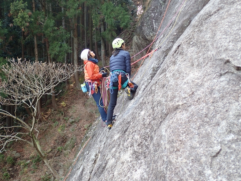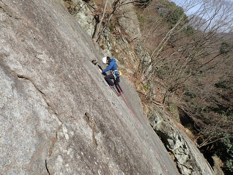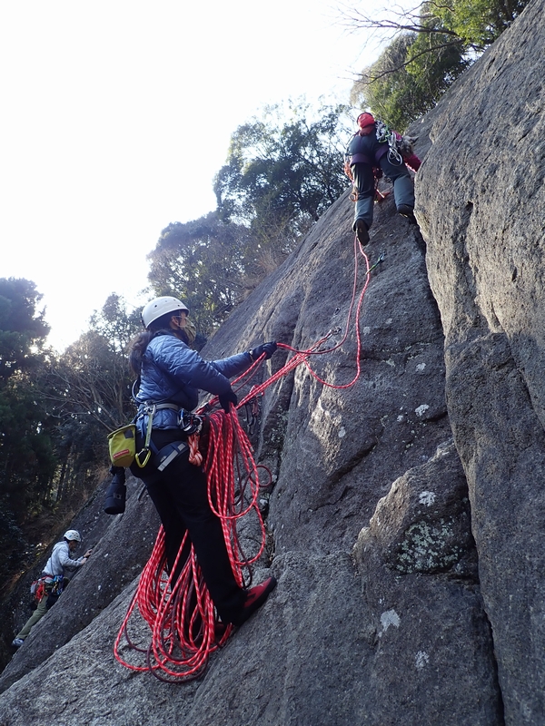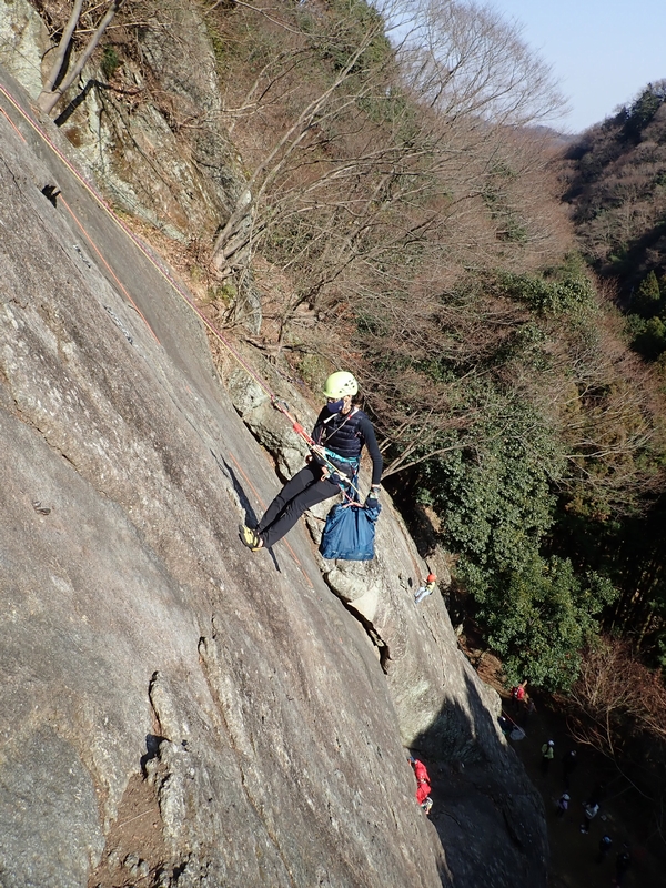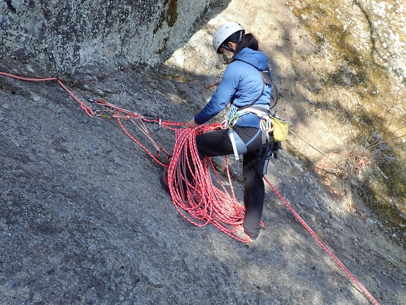 トップロープの支点として優れていることは前回(10/31日和田)確認していますが、マルチピッチでも「システム化されていて迷わない」と好評でした。ただし「ダイニーマスリングで作ったものは撚れてしまって扱いにくいので、(チョットかさばるけど)ケプラーコード(5.5㎜×5m)で自作がお勧め」という感想もありました。