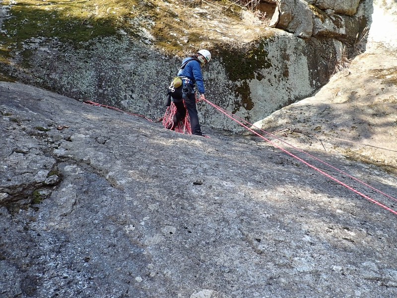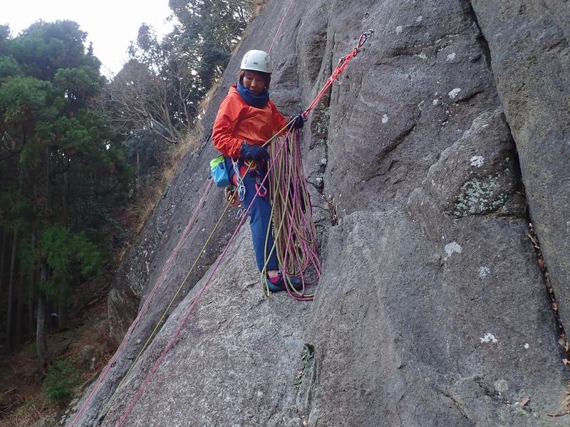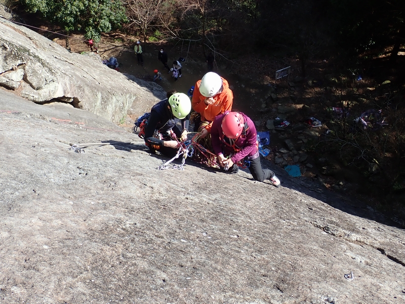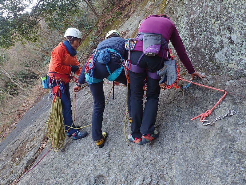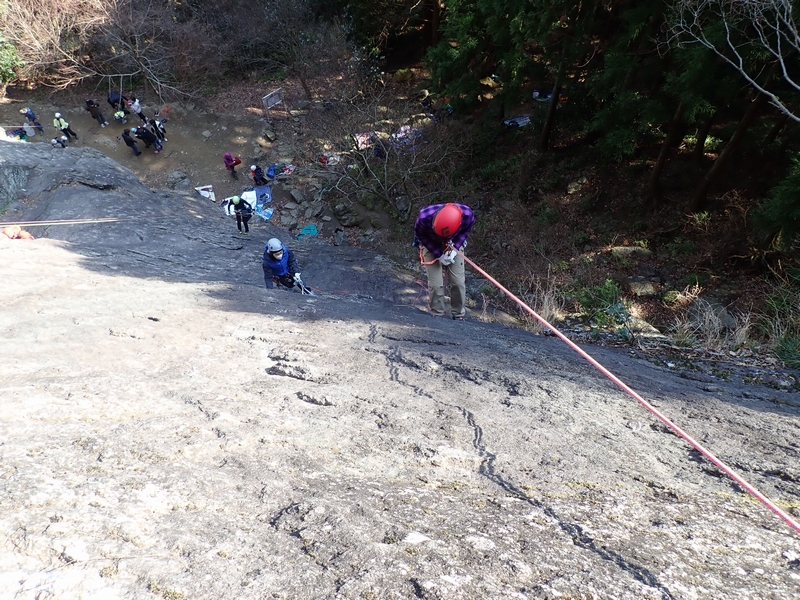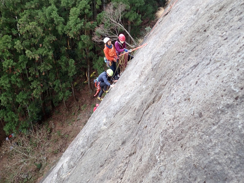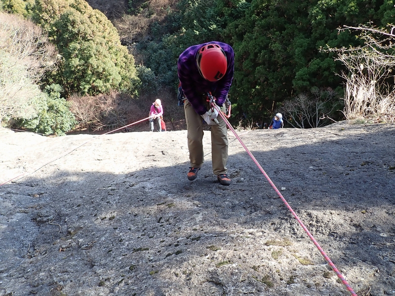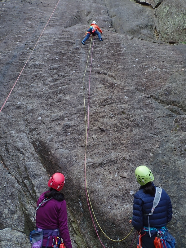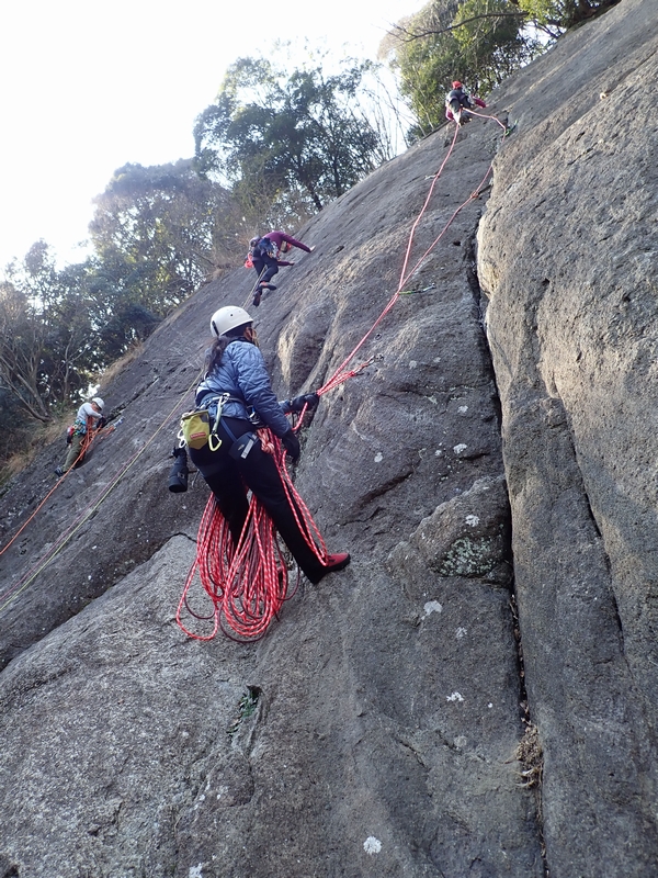 30mロープを使っていたチームは、懸垂下降も3ピッチに区切って練習。
